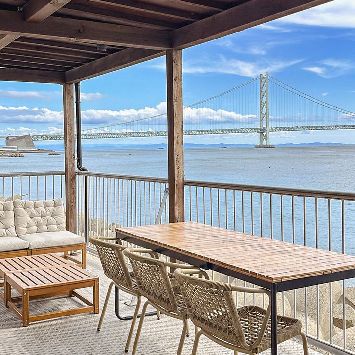 【テラス席】海を眺めながら、特別なひとときをお楽しみいただけるテラス席。ご家族でのお食事やデート、気の合う仲間とのBBQにぴったりの空間です。CAFEも営業しているので、ドリンクやデザートもご用意しております。潮風を感じながら、ゆったりとした時間をお過ごしください。